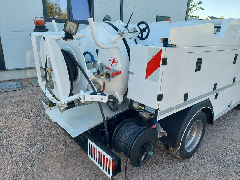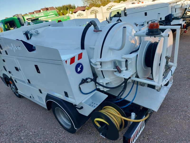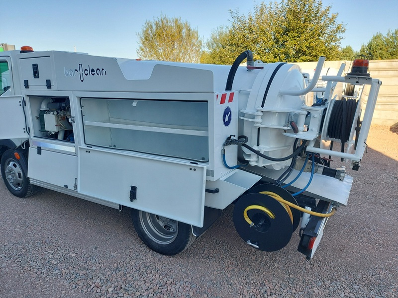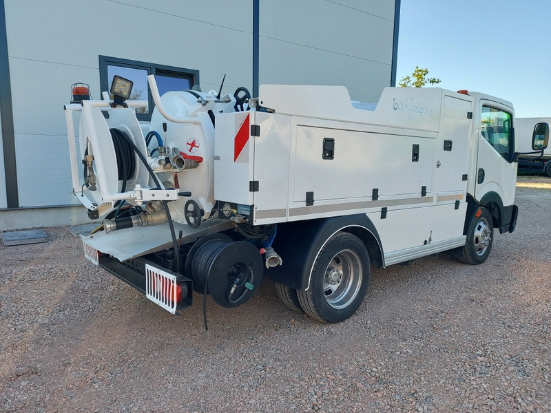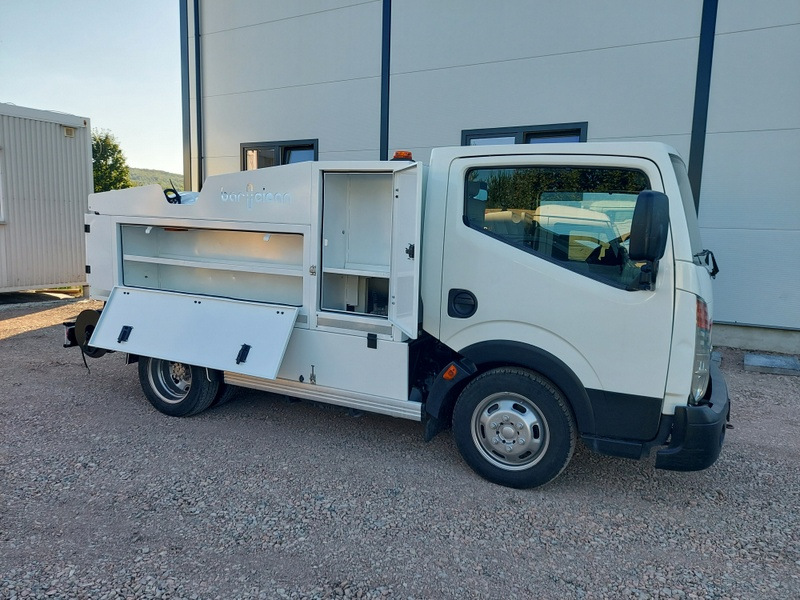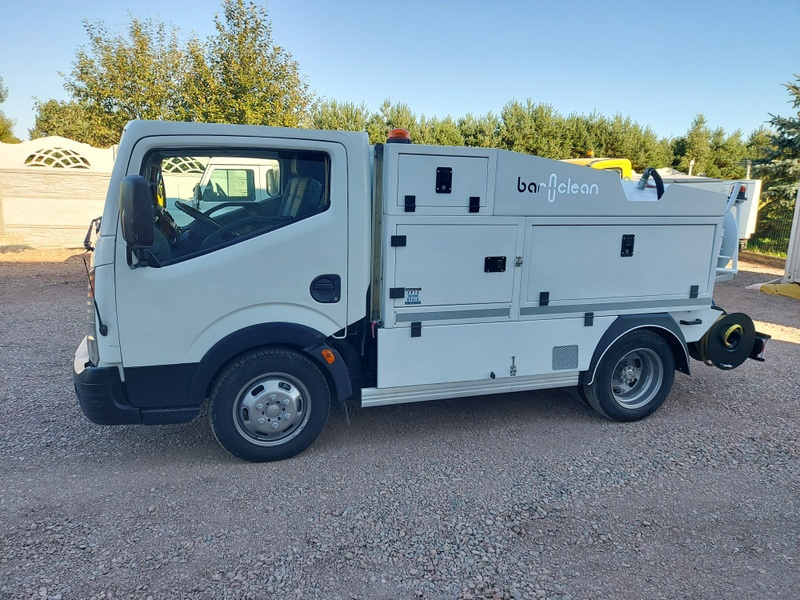 Nissan Cabstar jest przeznaczony do czyszczenia kanalizacji w niskich garażach. Ze względu na swoje wymiary wysokość 190cm oraz duży promień skrętu bez problemu poradzi sobie z wjazdem do niskich garaży wielopoziomowych. Auto posiada oryginalnie montowaną zabudowę firmy Baroclean z otwieraną tylną dennicą co ułatwia opróżnianie i czyszczenie zbiornika. Maszyna posiada dwa zwijadła na węża ciśnieniowego 1/2 cala oraz 3/8 cala. Ciśnienie jest generowane przez pompę wysokociśnieniową Pratissoli o wydajności 400 bar i 47l. min.